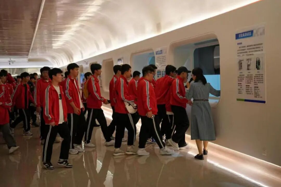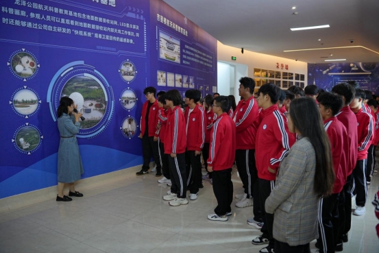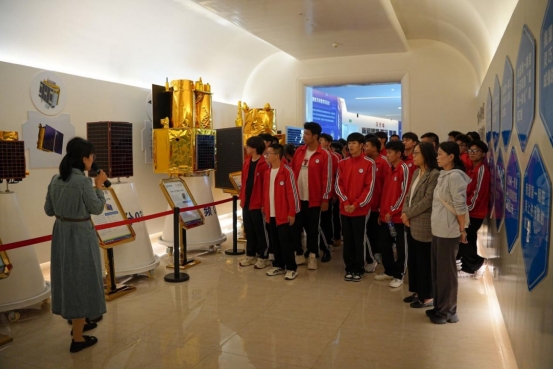 在基地科普讲师的引导下,学子们先后探访三条科普长廊。这里不仅陈列着“吉林一号”卫星的初代模型,更以丰富的图文和互动设备,系统性地展示了从空间站的精密构造到长征火箭的发展历程,课本中抽象的机械原理与电子知识,在实物展示与光影技术的加持下变得具象可感。