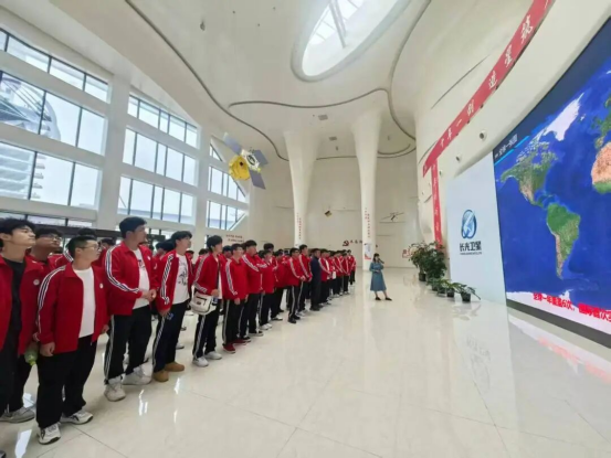 最让同学们感到兴奋的,是透过玻璃廊道近距离观看卫星的真实部件和生产车间。了解了“吉林一号”卫星如何实现“一箭多星”的组网运行,以及其在农林、水利、环保、城市建设等领域的广泛应用时,人群中不时发出阵阵惊叹。