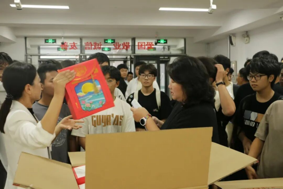 随后,老师们亲自将精心准备的节日慰问礼包送到每一位同学手中。香甜的月饼寓意团圆美满,更承载着学院对学子们无微不至的关怀。